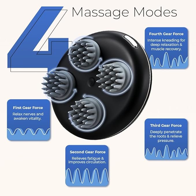- 𝐏𝐎𝐖𝐄𝐑𝐅𝐔𝐋 𝐇𝐄𝐀𝐃 & 𝐒𝐂𝐀𝐋𝐏 𝐌𝐀𝐒𝐒𝐀𝐆𝐄𝐑: Experience deep relaxation with this electric head massager for scalp, designed to relieve stress, improve blood circulation, and promote hair growth naturally.