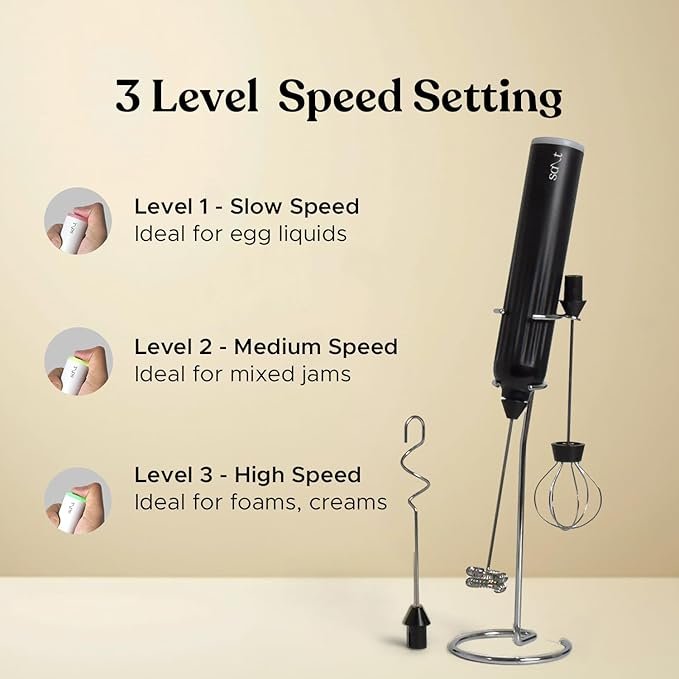 - Three Speed Settings: Customize your frothing experience with three adjustable speed settings to achieve the ideal froth for your favorite beverages.